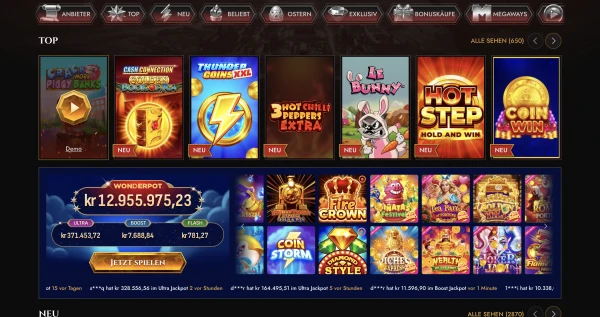Unsere Lobby ist auf Vielfalt ausgelegt, während das Browsen einfach bleibt. Slots sind die Hauptkategorie, aber du findest auch Blackjack, Roulette, Baccarat, Video Poker, Bingo, Rubbellose, Crash-Games sowie einen eigenen Bereich für Wetten und eSports-Wetten. Mit 11.000 verfügbaren Titeln kannst du nach Kategorie, Anbieter und Features filtern und dann die Spielinfos öffnen, um den theoretischen RTP zu sehen, sofern er angezeigt wird. Wenn du schnelle Sessions bevorzugst, kannst du play online slot games mit einem Klick und anschließend zu Sport oder Tischspielen wechseln, ohne das Hauptmenü zu verlassen.